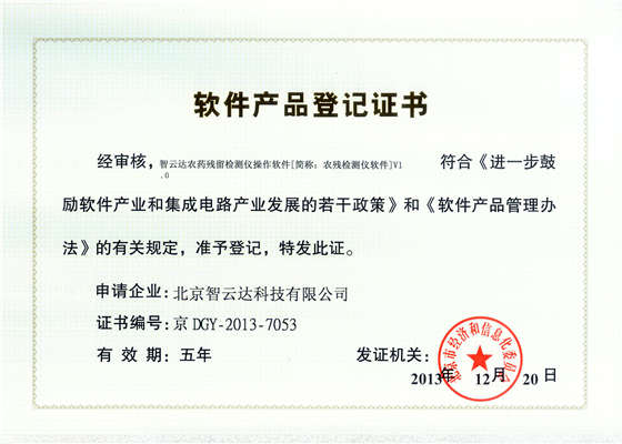 軟件產(chǎn)品登記證書——農(nóng)藥殘留檢測儀操作軟件