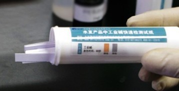 若試紙變?yōu)樗{色,則為陽性,即樣品中含有工業(yè)堿;試紙不變色則為陰性,即樣品中沒有檢測出工業(yè)堿。若檢測結(jié)果為陽性,應(yīng)進行多次重復(fù)驗證,必要時可將樣品送實驗室做進一步檢測。