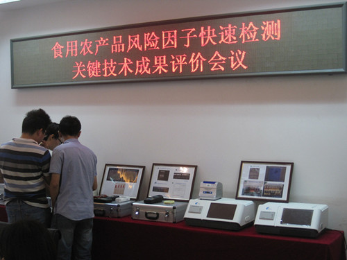 2014年8月31日上午,在中國(guó)農(nóng)業(yè)大學(xué)食品學(xué)院二樓會(huì)議如期成功舉辦了“食用農(nóng)產(chǎn)品風(fēng)險(xiǎn)因子快速檢測(cè)關(guān)鍵技術(shù)成果評(píng)價(jià)會(huì)”。該會(huì)議由農(nóng)業(yè)部中國(guó)農(nóng)學(xué)會(huì)組織,會(huì)議評(píng)審專家組由中國(guó)工程院孫寶國(guó)院士擔(dān)任組長(zhǎng),由天津科技大學(xué)校長(zhǎng)王碩擔(dān)任副組長(zhǎng),另有農(nóng)科院加工所等科研院所及高校的專家參加。
