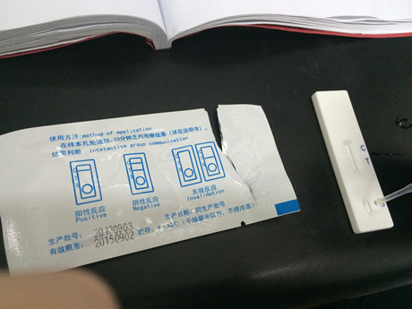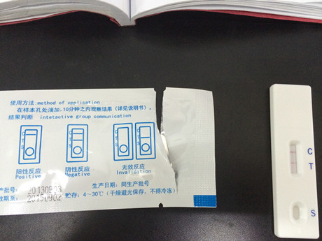 1、 從包裝袋中取出試紙卡,打開后平放在桌面上,用吸管吸取待檢樣品溶液,滴加 3 滴于加樣孔中,加樣后開始計時