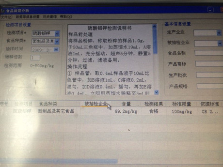 5、放入智云達SMART-02F多功能食品安全檢測儀中檢測,檢測結果:油條中鋁含量合格,為89.2mg/kg,小于國家標準限量100mg/kg。