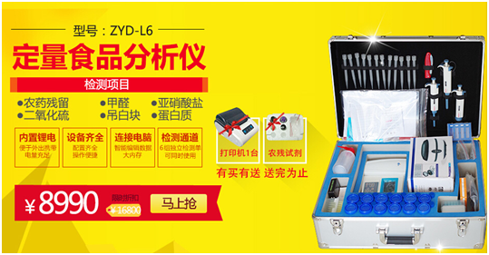 活動期間ZYD-L6食安安全定量食品分析儀僅需8990元,贈送打印機和農殘試劑,有買有送,送完為止。