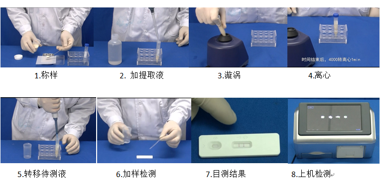 本產品用于快速檢測奶制品、糧食、谷物以及飼料中的黃曲霉毒素B1,靈敏度為5 μg/kg,整個檢測過程只需要5分鐘,適用于各類企業及檢測機構。