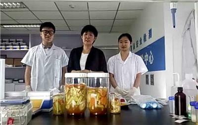北京智云達技術工程師楊老師和趙老師將準備好的樣品分別進行標號,通過智云達自主研發生產的快速檢測產品:亞硝酸鹽速測管,對泡菜樣品進行快速檢測試驗。