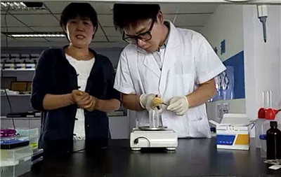 北京智云達技術工程師楊老師和王老師將準備好的樣品分別進行標號,通過北京智云達自主研發生產的快速檢測產品:面制品中鋁速測盒,對油條樣品中的鋁含量進行快速檢測試驗。