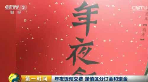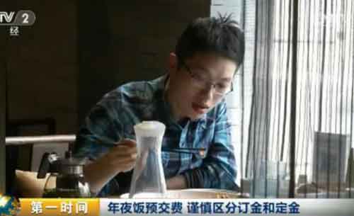 某飯店總經(jīng)理 馬凱:我們一般都會跟顧客提前約定,如果有急事的情況下,可能不能到店里就餐,在就餐日提前兩三天,到店里辦一下手續(xù),就可以退訂的。此外,消費(fèi)者協(xié)會的工作人員提醒,消費(fèi)者在預(yù)交年夜飯費(fèi)用時,一定要多留心。