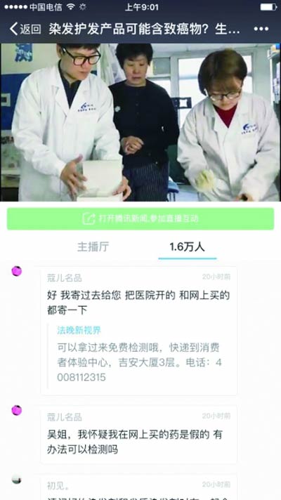 本文關鍵詞:北京智云達 法制晚報 騰訊直播 染發品苯二胺
