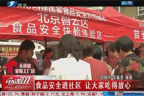 北京智云達作為食品安全快檢企業,現場除了免費幫助社區居民進行食品安全檢測,還對居民的疑問進行細心解答,現場也有多家電視臺對北京智云達進行了采訪。