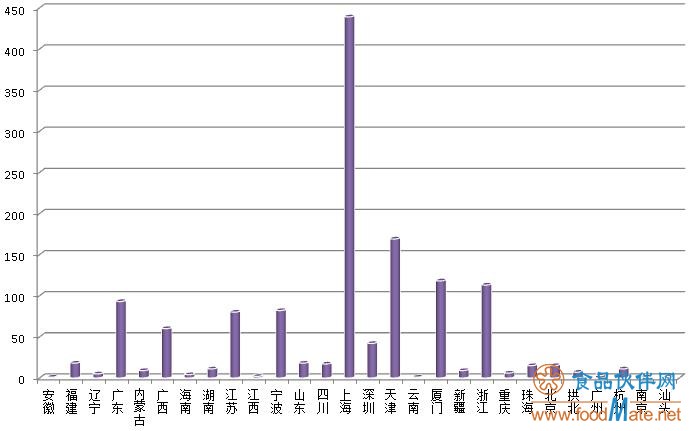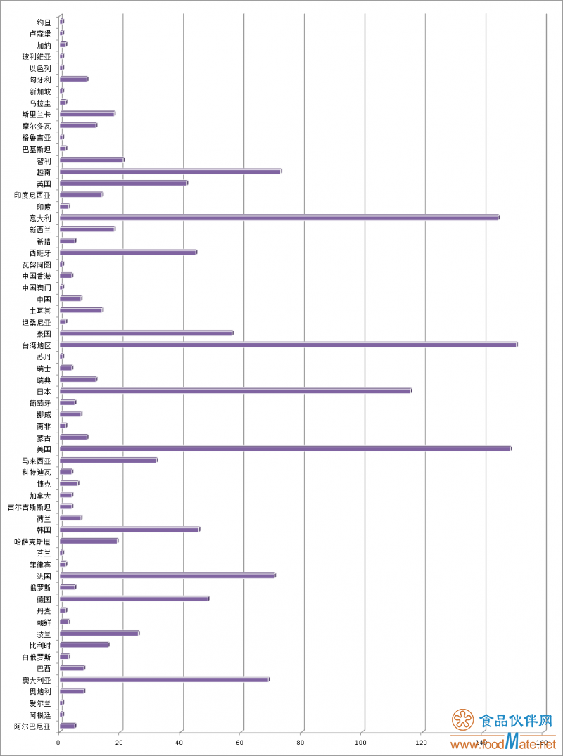 統(tǒng)計(jì)顯示,這些食品來自六十多個(gè)國(guó)家或地區(qū)。其中,意大利、美國(guó)、日本這些國(guó)家以及臺(tái)灣地區(qū)的不合格食品居多,尤以臺(tái)灣地區(qū)的最多。