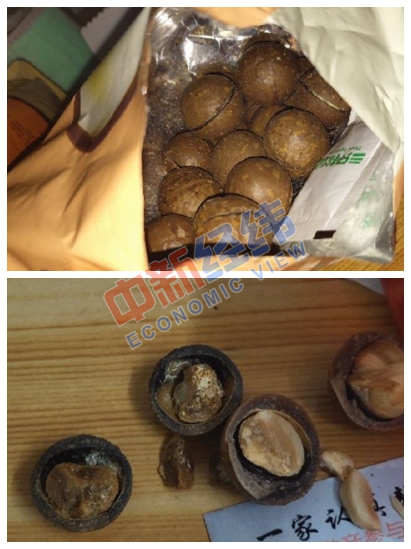 近日,鄭杰(化名)在三只松鼠天貓旗艦店上購買了兩包夏威夷果,收到貨時卻發現,其中一包夏威夷果已經發霉。