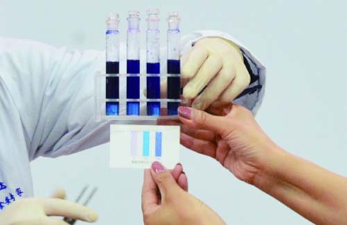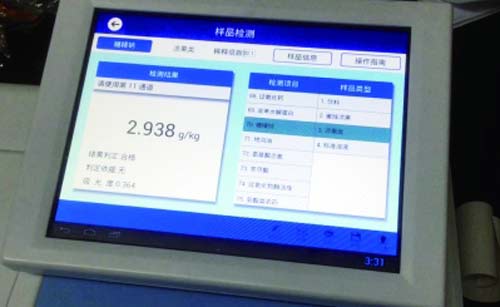 北京智云達(dá)技術(shù)工程師楊老師和王老師首先將樣品粉碎,再通過使用北京智云達(dá)自主研發(fā)生產(chǎn)的快速檢測產(chǎn)品:明礬速測盒、ZYD-FI,對樣品溶液中的糖精鈉和明礬含量進(jìn)行檢測。