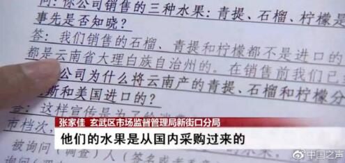經(jīng)過市場(chǎng)監(jiān)管部門調(diào)查核實(shí),這些水果并非進(jìn)口,而是國(guó)產(chǎn)的。南京市玄武區(qū)市場(chǎng)監(jiān)管局新街口分局張家佳告訴記者:“當(dāng)時(shí)我局在超市發(fā)現(xiàn)這個(gè)來源不明的水果的時(shí)候,立即要求下架處理,并且供貨商也承認(rèn),他們的水果是國(guó)內(nèi)采購(gòu)過來的,說他們的水果來自云南。我們以涉嫌虛假宣傳進(jìn)行立案調(diào)查?!?/span>