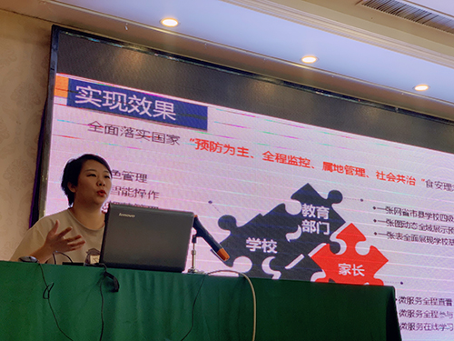 北京智云達資深產(chǎn)品經(jīng)理錢瑞,為各位參訓學員分享了智云達在校園餐飲食品安全保障中的智能化解決方案,得到了省教育廳領導的認可。智云達作為國內領先的食品安全快檢產(chǎn)品、檢測服務以及信息化構建的供應商及服務商,為校園餐飲食品營養(yǎng)與安全提供保障,打造了集“食品溯源-明廚亮灶-快速檢測-校園餐飲營養(yǎng)與安全監(jiān)管-第三方檢測服務-食品安全保險”于一體的智能化系統(tǒng),可實現(xiàn)可視感知、節(jié)點預警、過程監(jiān)督、事后追溯的綜合保障。