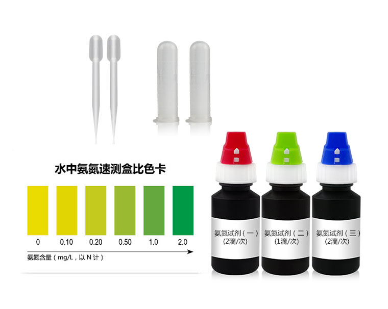 氨氮(NH3-N)以游離氨(NH3)或銨鹽(NH4+)的形式存在于水中,主要來源于人和動物的排泄物、雨水徑流以及農用化肥的流失以及工業廢水。氨氮可導致水富營養化現象產生,是水體中的主要耗氧污染物,對魚類及某些水生生物有毒害作用。氨氮是生活飲用水是否被污染的指標之一。本速測盒適用于水中氨氮的快速檢測。