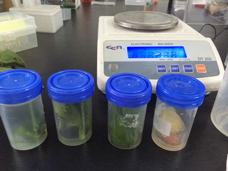 1、將5個蔬菜水果樣品做前處理